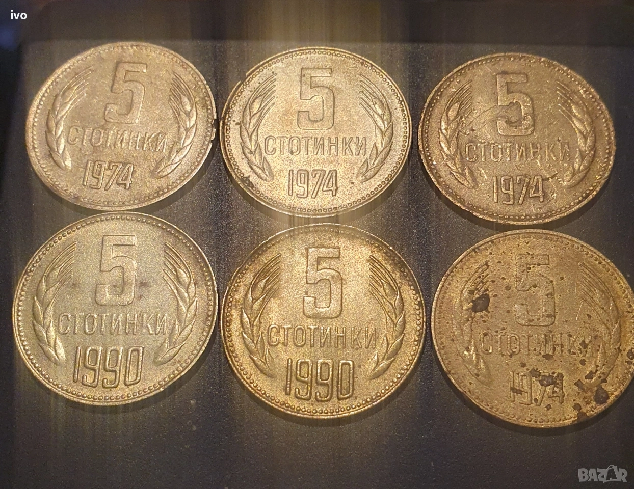 5 стотинки 1974, 1990, снимка 1 - Нумизматика и бонистика - 53851928 5 стотинки 1974, 1990, снимка 2 - Нумизматика и бонистика - 53851928 5 стотинки 1974, 1990, снимка 3 - Нумизматика и бонистика - 53851928 1/3