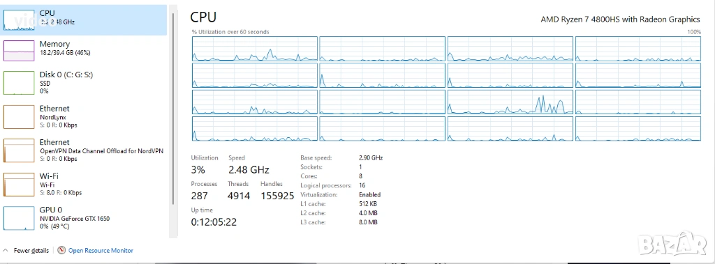💡 Машината е конфигурирана с рядко срещаните 40GB RAM, което я прави много по-мощна от повечето лаптопи в този клас.