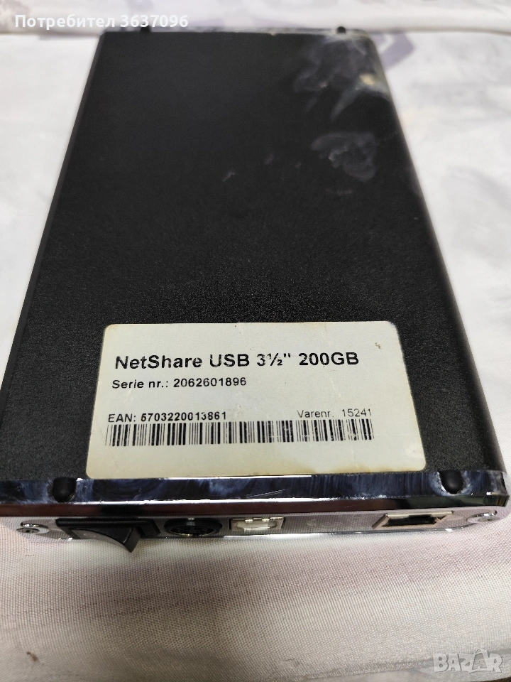 Мрежов хард диск 200гб NAS. без захранващ кабел. Внос, не е тестван.