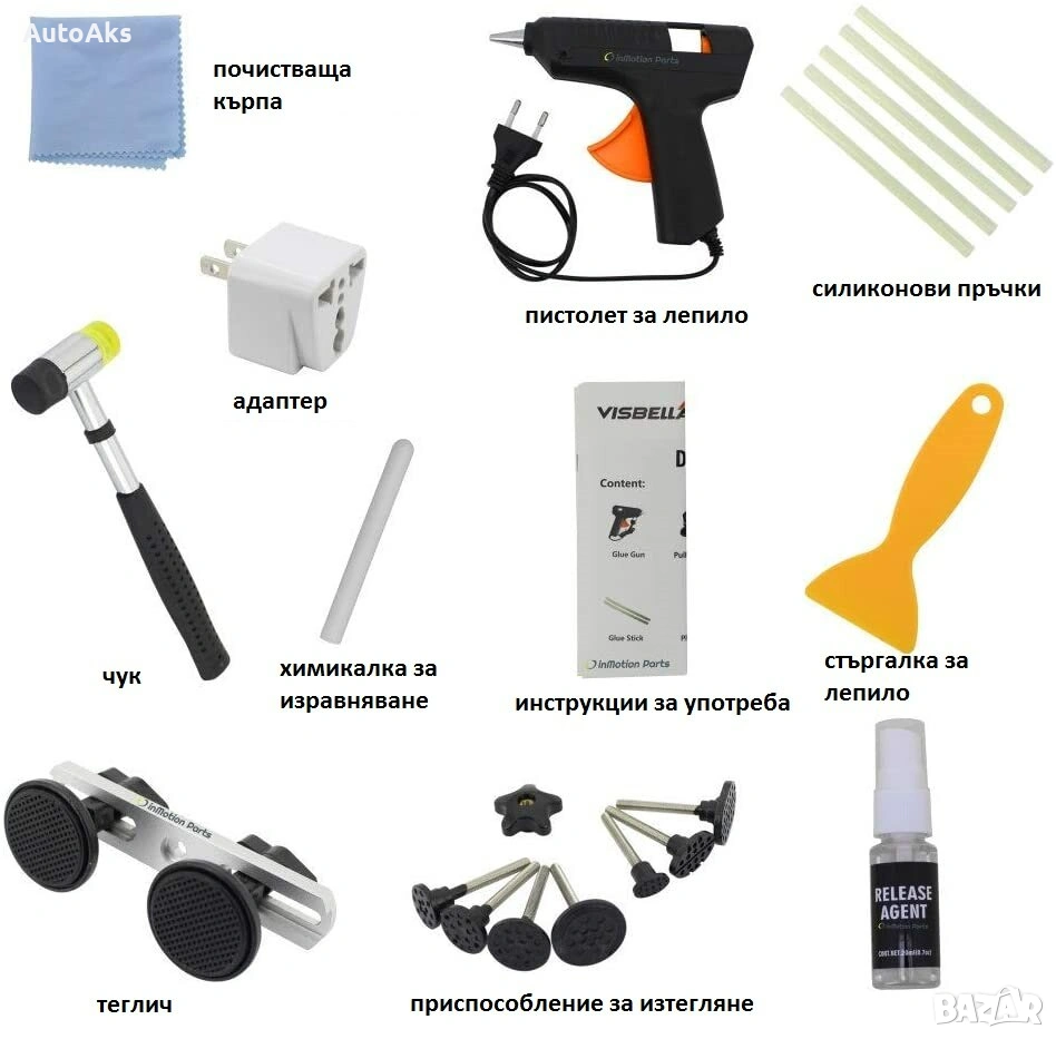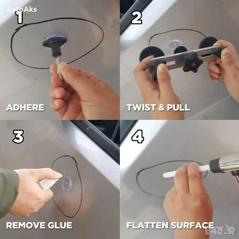 Този комплект ще Ви помогне да изправите вдлъбнатините по Вашия автомобил без да посещавате сервиз.