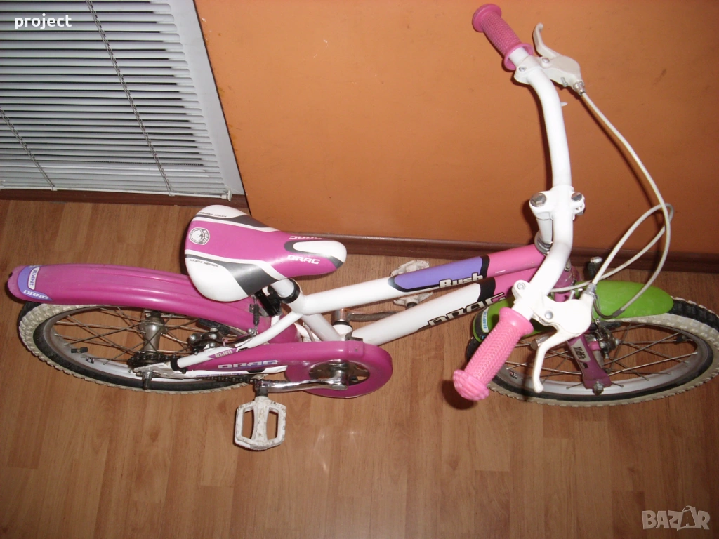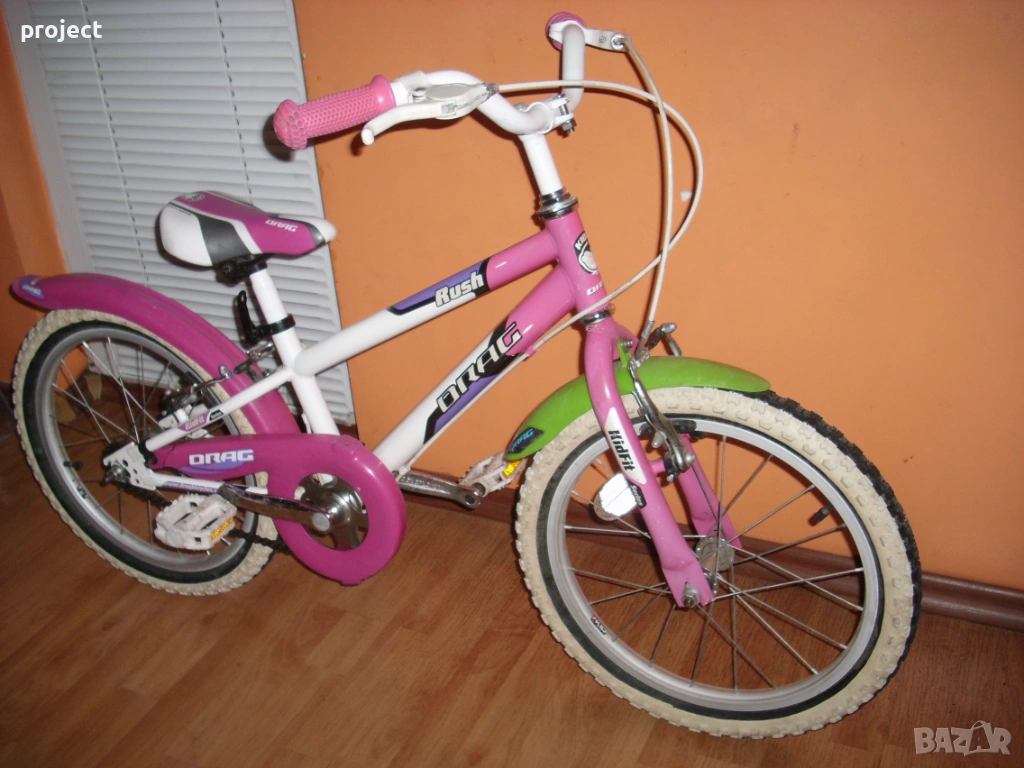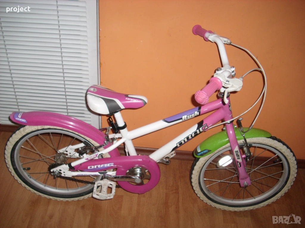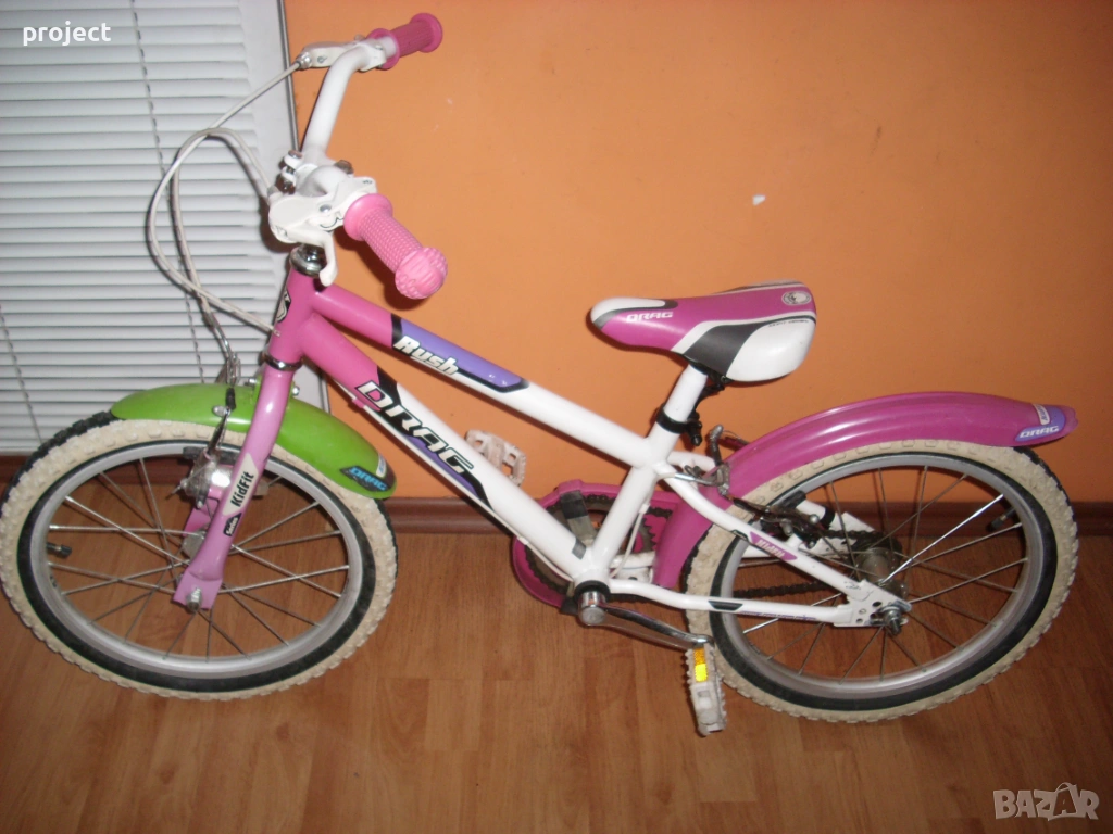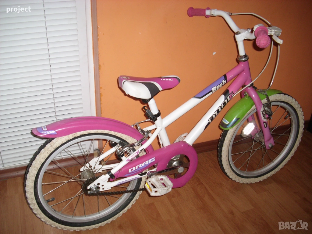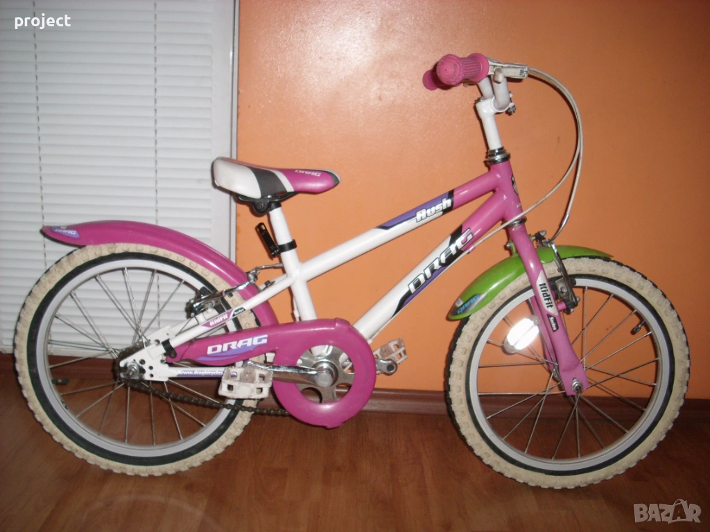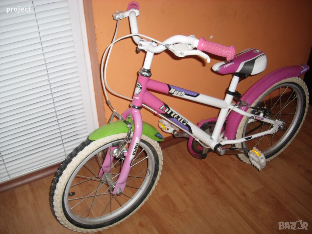 Олекотен детски велосипед/колело DRAG модел Rush с гуми 18 цола с планински гуми и алуминиеви капли.ПЕРФЕКТНО техническо и визуално състояние с минимални следи от употреба и всичко работи перфектно и безотказно много здрав и сполучлив велосипед с две спирачки и свободен венец и помощни колела(чисто нови).Всичко работи идеално и в близките 2-3 години не е необходимо нещо да се сменя.Подходящ е за деца с ръст минимум 114см.или от 5 години . Цена 79€ при лично взимане от адрес или по куриер без наложен платеж.За страната изпращам с куриерска фирма Еконт Експрес на цена 99€ само с предварително изпратено капаро което покрива разходите за доставка в двете посоки.