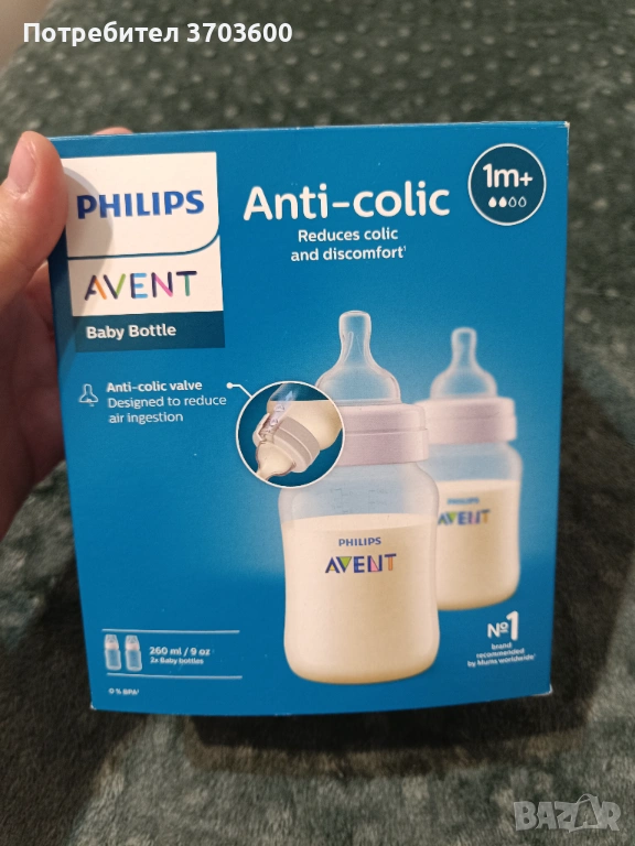 Комплект за хранене от 2 броя шишета Classic Anti-colic с биберон 1м+, 2х260мл - Philips AVENT с кутия неотваряни - 15 евро