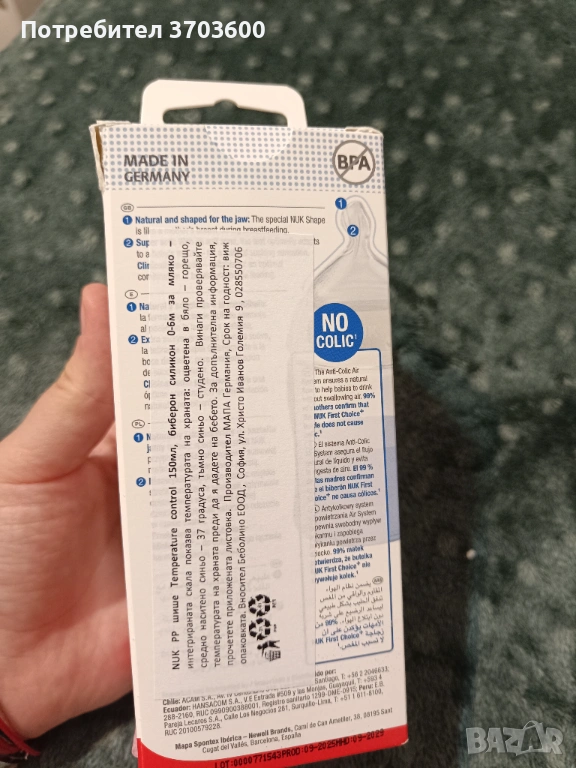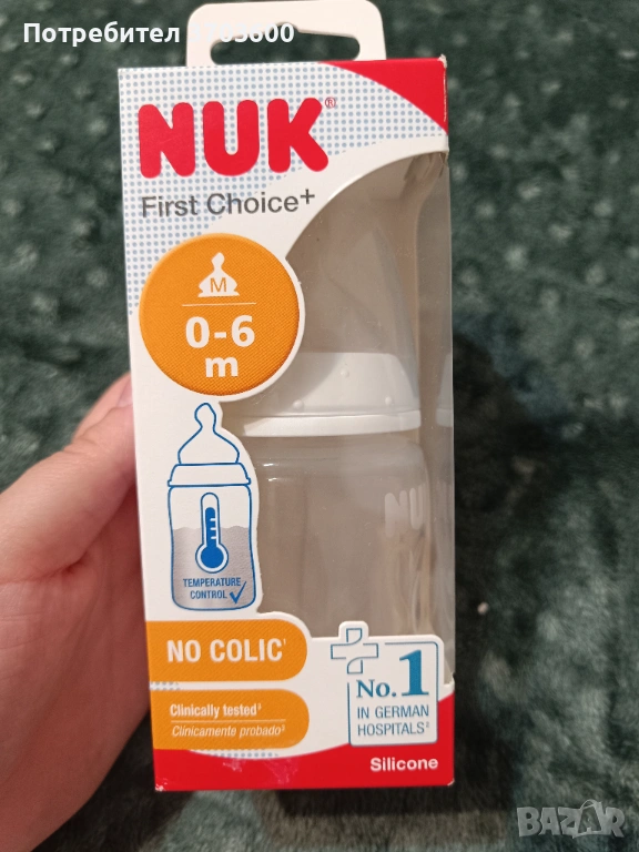 Шише РР NUK Temperature control 150мл., силиконов биберон, 0-6м. с кутия - 7 евро - неотваряно