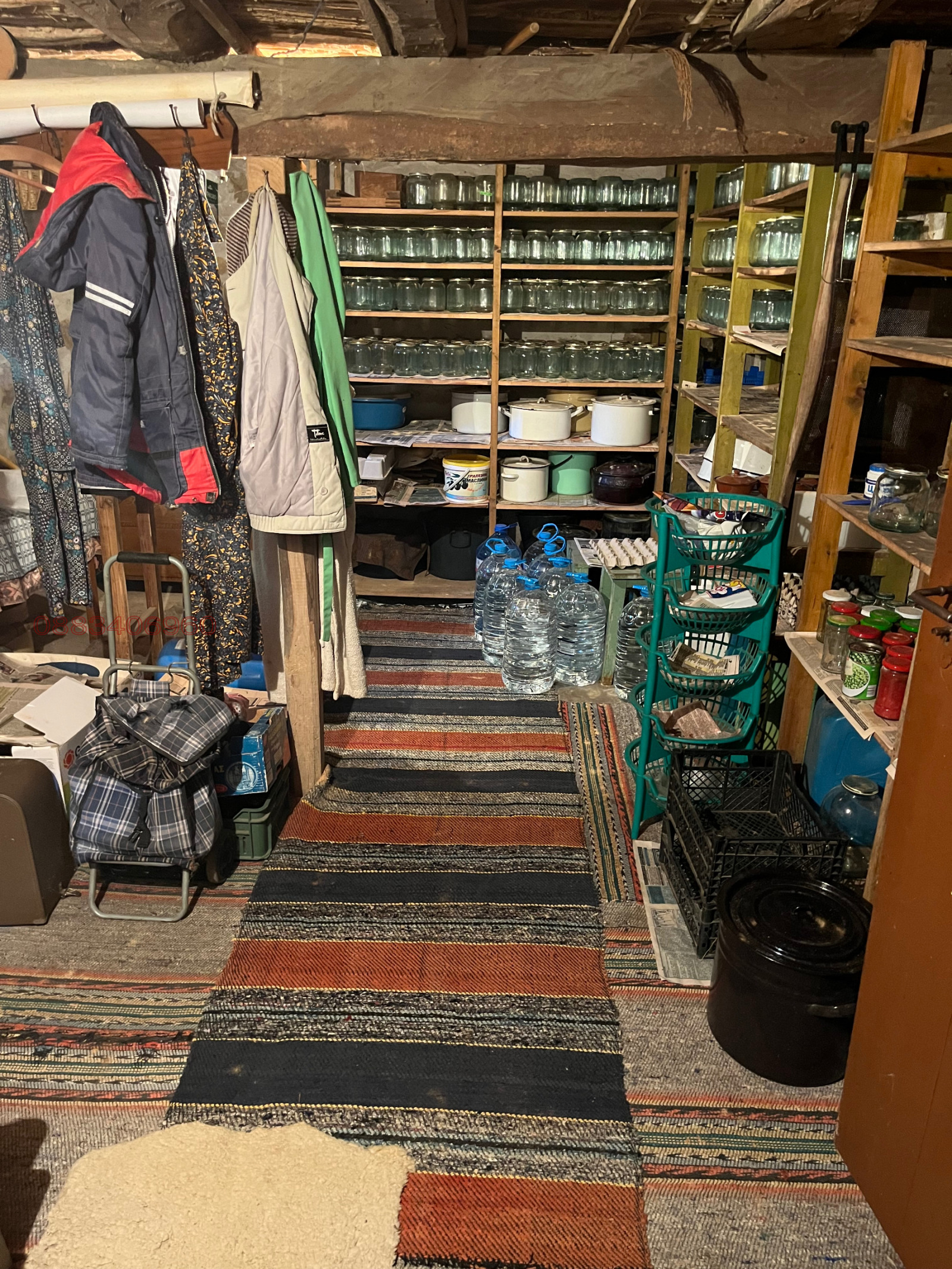 Къща (101 кв.м.): Тухлена, измазана и здрава. Състои се от две спални, хол и килер на първи етаж и антре, всекидневна, кухня и баня на приземен етаж. Всекидневната има връзка с вътрешно просторно мазе.
