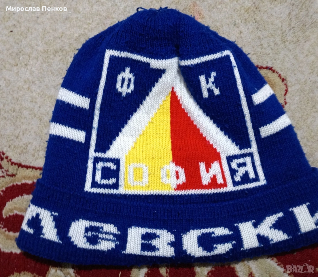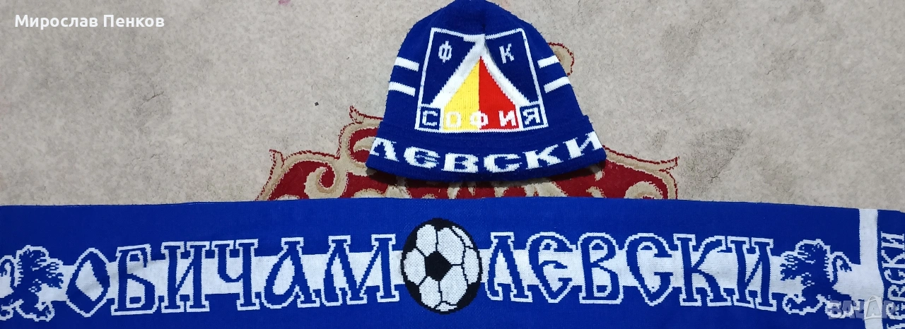 Фен артикули на Левски София-Зимен двулицев шал и шапка.Цената е обща.