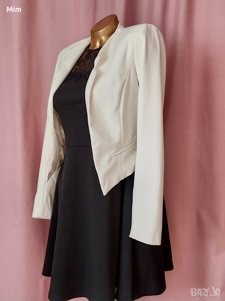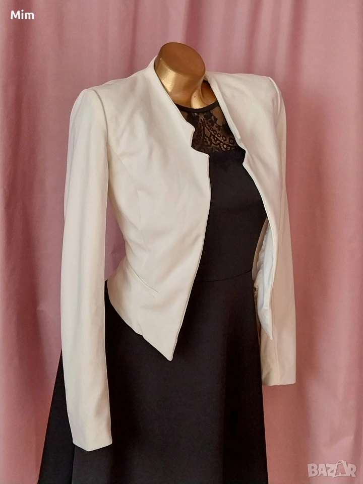 3- Бяло късо сако със сатенена бяла подплата, гръдна 90 см ,дължина 45 /50 ,дължина на ръкавите 59 см
