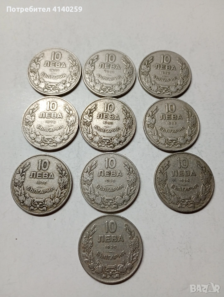 БЪЛГАРСКИ МОНЕТИ 10 ЛЕВА 1930 Г СЪСТОЯНИЕ ОТЛИЧНО НЕЧИСТЕНИ ЦЕНА ЗА 10 БРОЯ ПОЛУЧАВАТЕ СНИМАНИТЕ МОНЕТИ РАЗГЛЕДАЙТЕ ДРУГИТЕ МИ ОБЯВИ ДА КОМБИНИРАТЕ ДОСТАВКА ЕКОНТ ЗА ВАРНА ЛИЧНО
