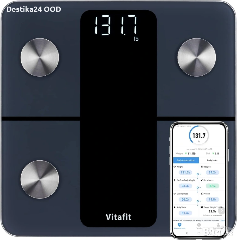 Смарт кантар Vitafit с Bluetooth измерване на мазнини