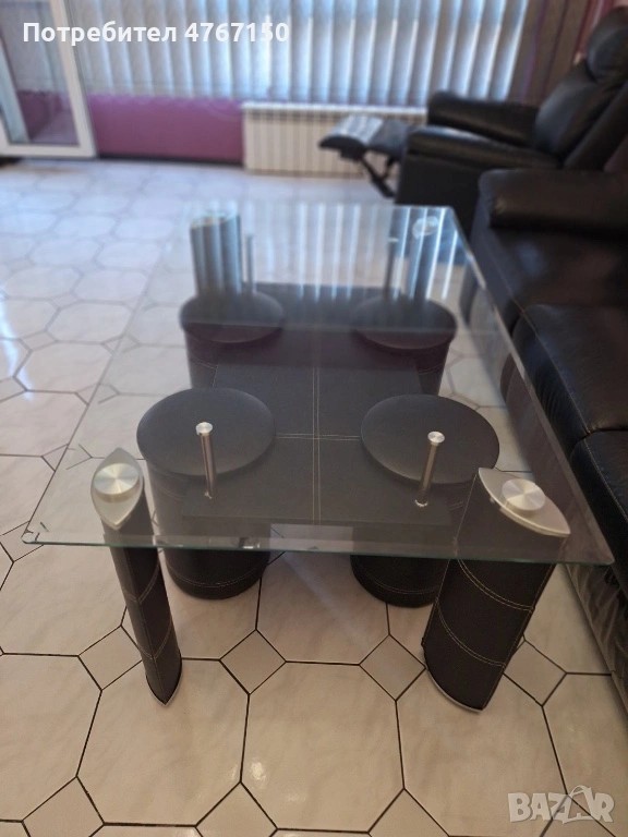 4. Маса от същата серия с четири табуретки, които се прибират в масата и се вадят при необходимост.