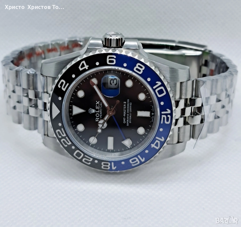 Луксозен часовник Rolex GMT- Master II Batman, най-висок клас изработка, корпус стомана 904L, механизъм Swiss Copy ETA. В цената е вклю чена оригинална кутия комплект.