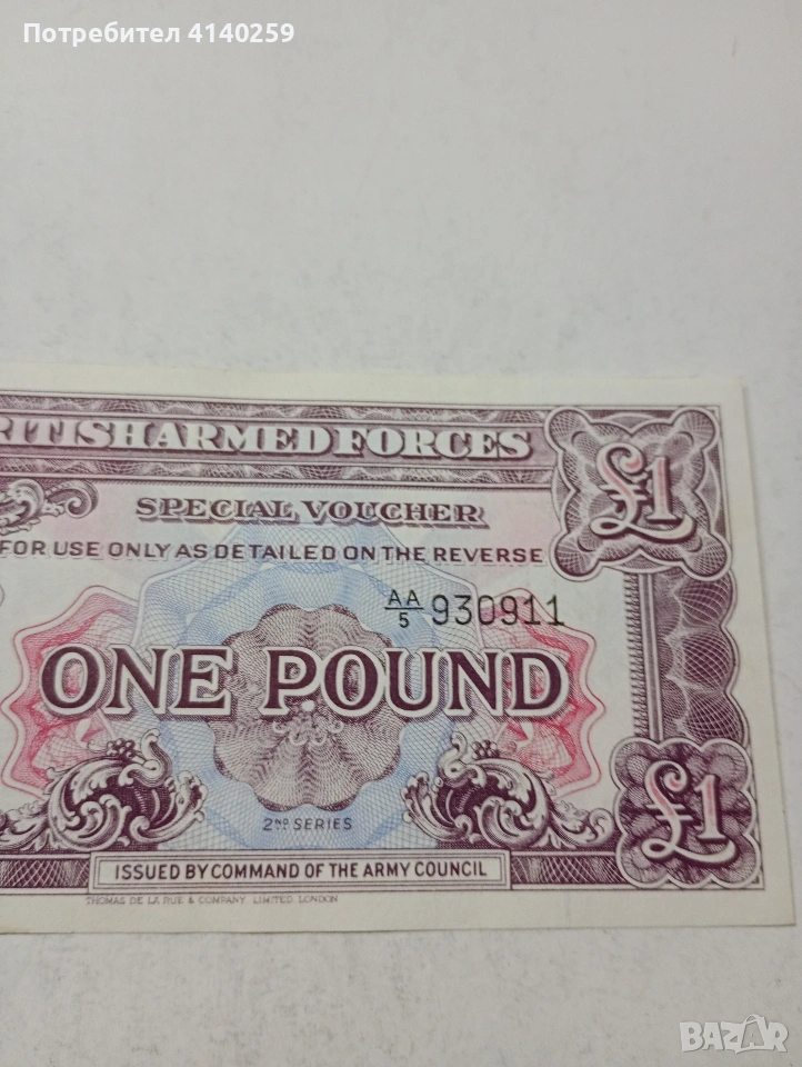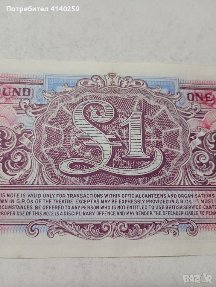 БРИТАНСКА БАНКНОТА 1 ПАУНД 1948 Г ИЗПОЛЗВАНА ЗА БРИТАНСКАТА АРМИЯ СЪСТОЯНИЕ НОВО ПОЛУЧАВАТЕ СНИМАНАТА БАНКНОТА РАЗГЛЕДАЙТЕ ДРУГИТЕ МИ ОБЯВИ ДА КОМБИНИРАТЕ ДОСТАВКА ЕКОНТ ЗА ВАРНА ЛИЧНО
