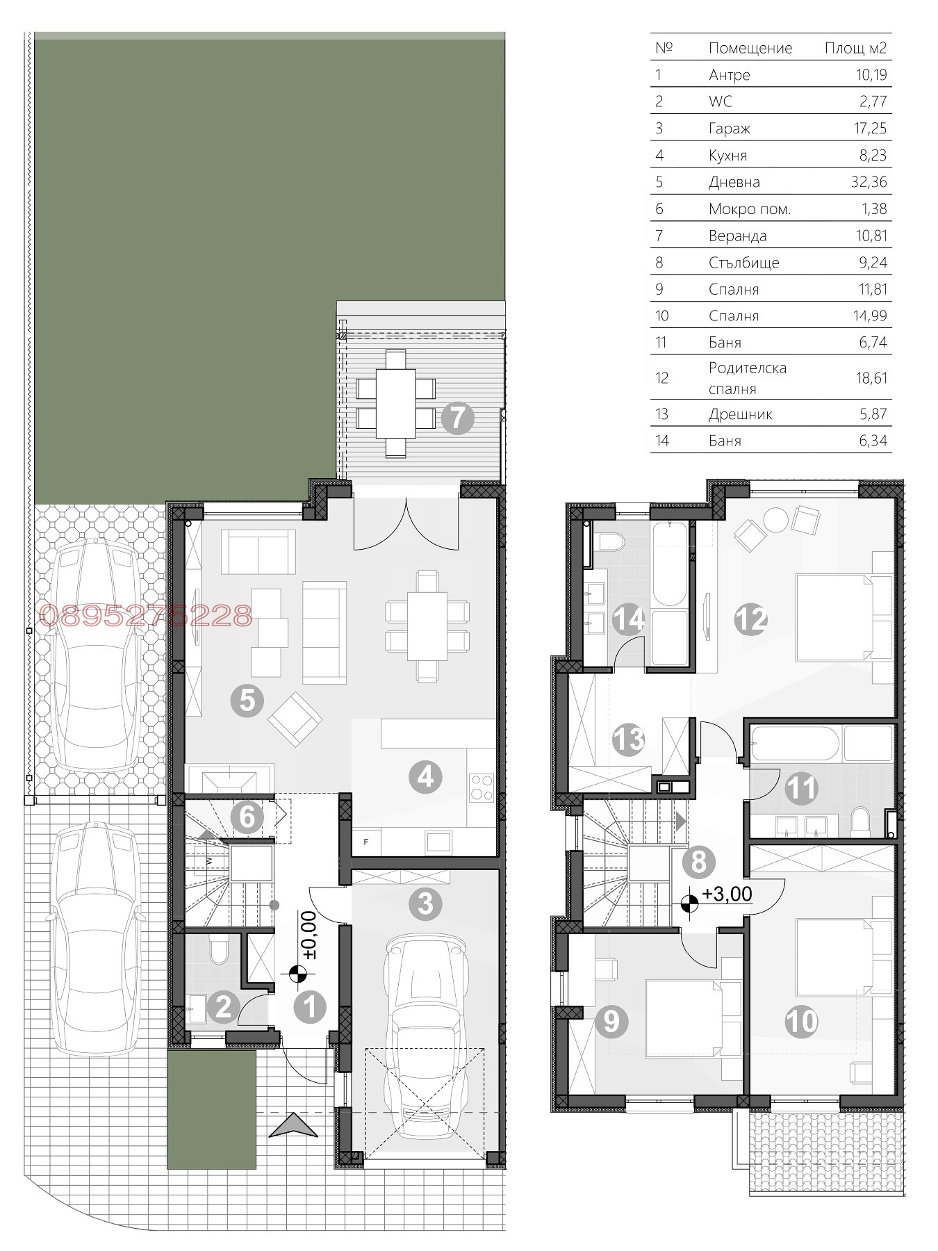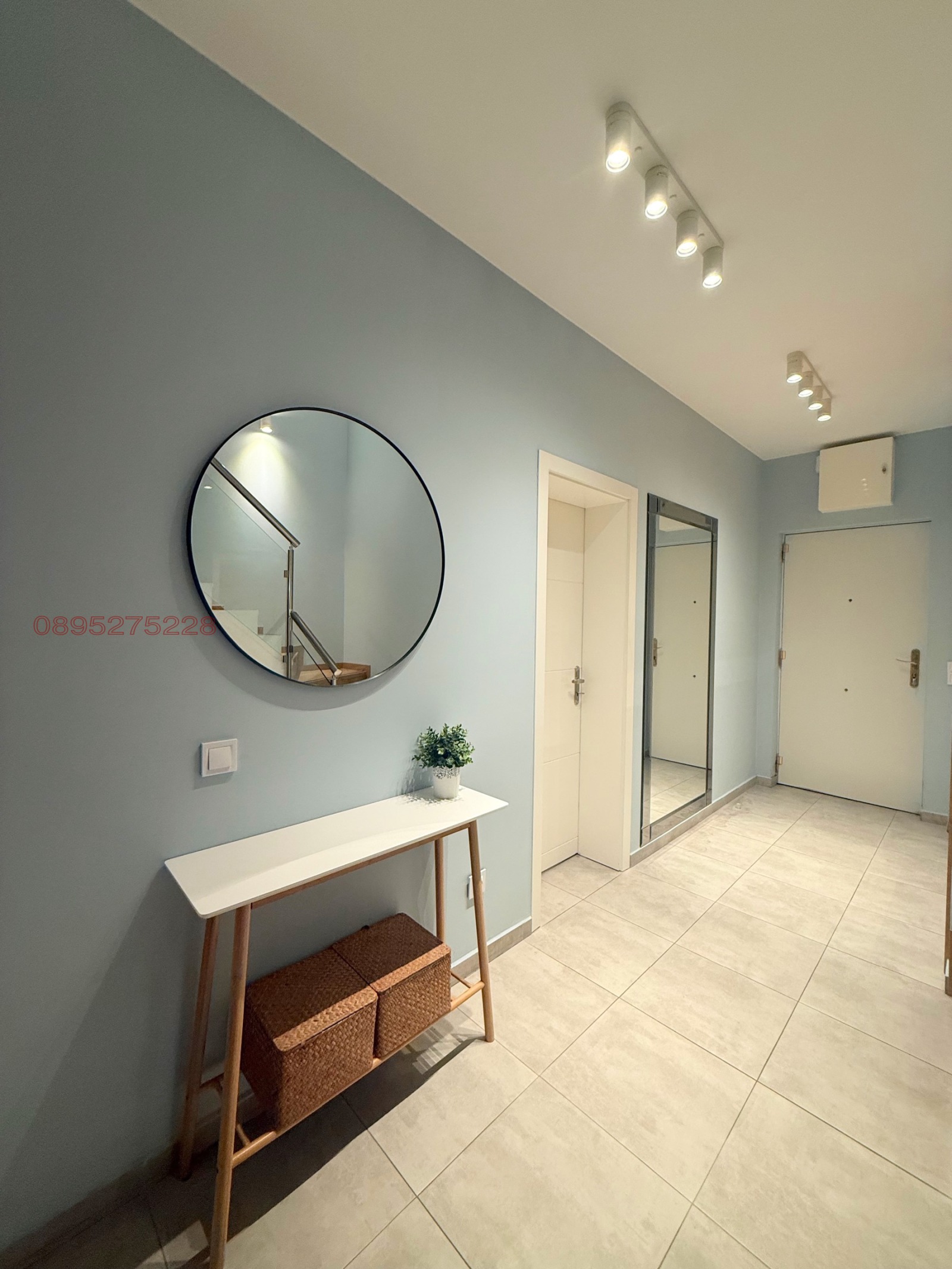 - Три спални, просторен хол с кухня и трапезария, две бани, тоалетна за гости, гардеробна, перално.