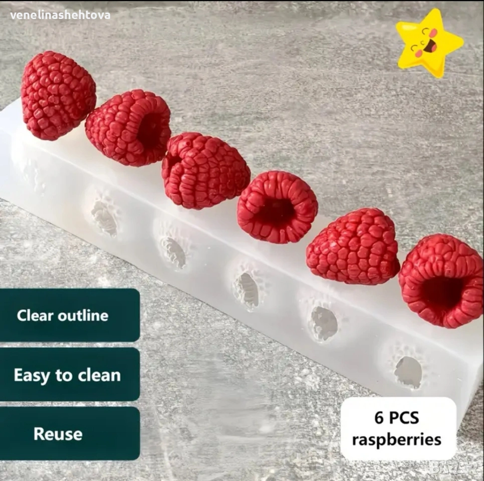 6 броя 3D малини силиконов молд шоколад свещи гипс смола фондан за декорация на торта мъфини → Обява 53853998