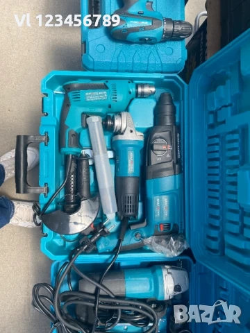 Пакетът включва и редица полезни аксесоари като гъвкави дискове за рязане на метал, спирали (свредла) за пробиване в зидария, длета (плоски и заострени), дистанционер, патронник и гаечни ключове. Включена е и кутия за съхранение, за да поддържате вашите инструменти организирани и защитени.