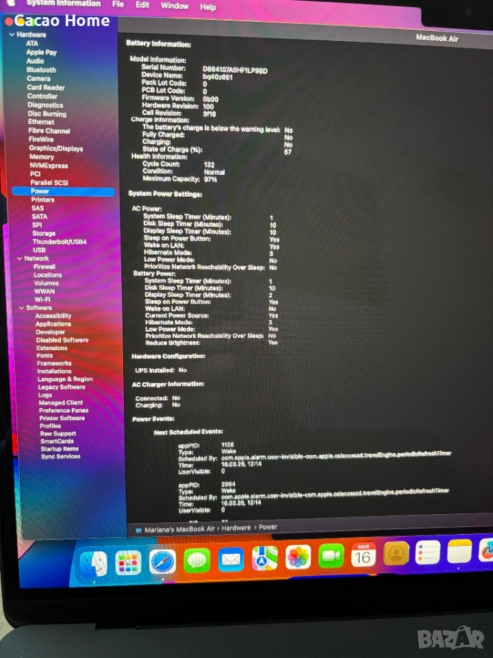 Батерията е в много добро състояние – 97% здраве и само 132 цикъла.