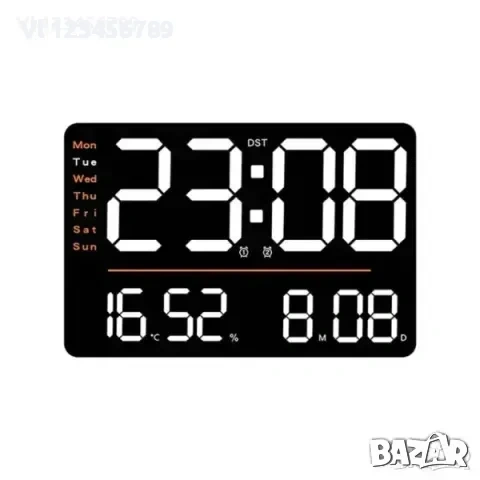 LED стенен часовник X6636 с време,седмица,температура,влажност+дистанц