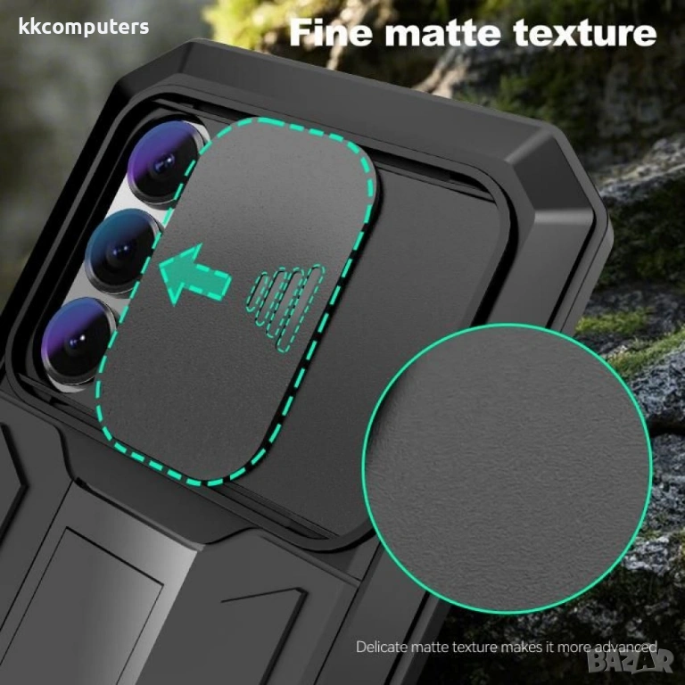 Изберете R-JUST – здравият механичен калъф с IP54 защита, плъзгащо се капаче за камера и метална стойка за вашия Samsung Galaxy S26 5G.