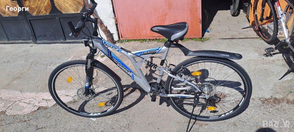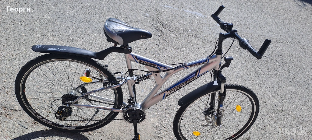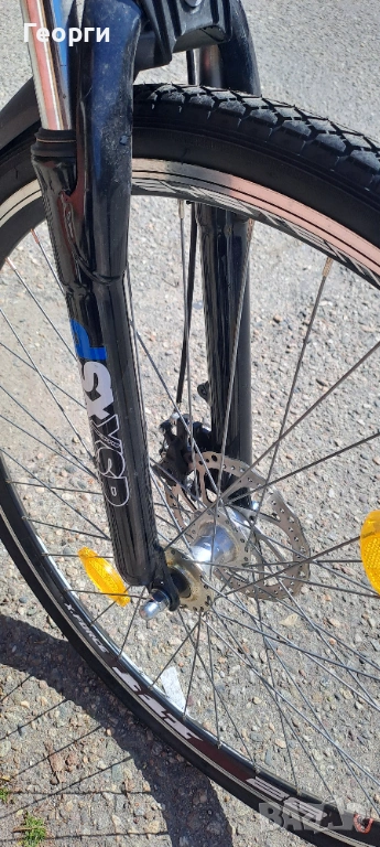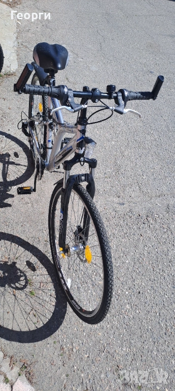 Велосипеда е неразличим от нов, чисто нови вътрешни и външни гуми, предна дискова спирачка, скорости шимано, внос от Германия.