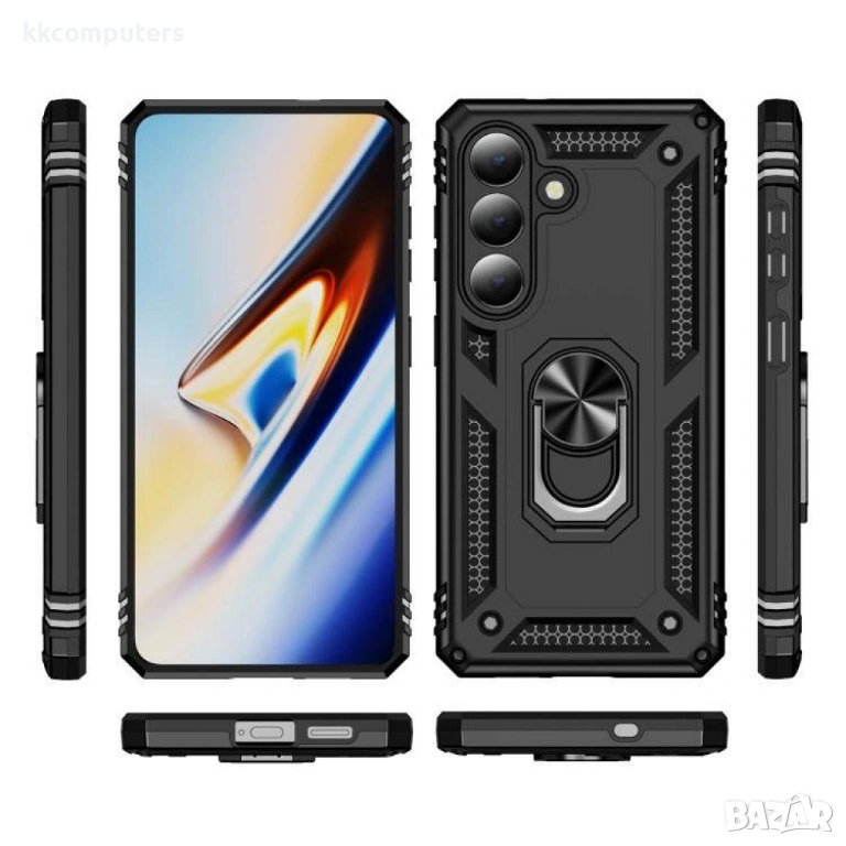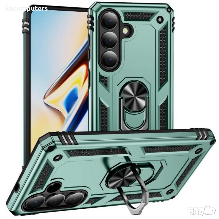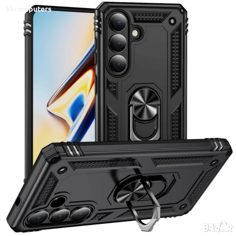 Този шокоустойчив калъф за Samsung Galaxy S26 5G съчетава здрава конструкция с практична функционалност на достъпна цена. Изработен от PC и TPU материал, той е издръжлив и здрав, като осигурява отлична защита срещу надраскване, удар и хлъзгане. 360-градусовият въртящ се пръстен на гърба предлага удобно държане с пръст и може да се използва като стойка за гледане без ръце. Прецизните изрези осигуряват лесен достъп до всички бутони и портове. Комплектът включва скрийн протектор за цялостна защита на екрана. Предлага се в 7 стилни цвята.