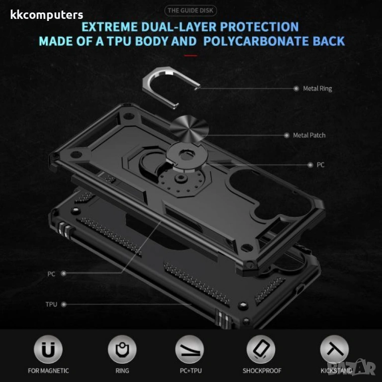 Издръжлива PC + TPU конструкция: Изработен от PC и TPU материал, калъфът е здрав и издръжлив, осигурявайки отлична защита срещу надраскване, удар и хлъзгане.