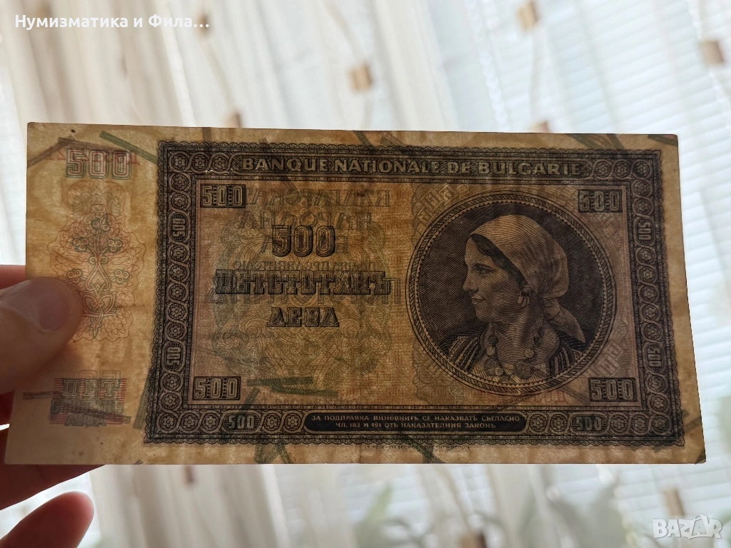 Предлагам за продажба оригинална царска банкнота от 500 лева, 1940 година, от периода на управлението на Boris III of Bulgaria.