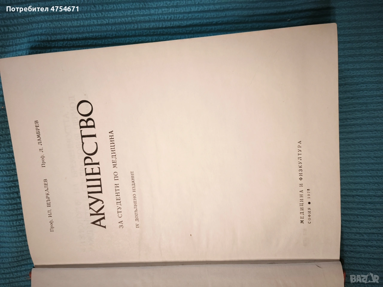 Класически учебник по акушерство с автори проф. Илия Щъркалев и проф. Любомир Ламбрев, издателство Медицина и физкултура, 1978г., твърди корици, платно.