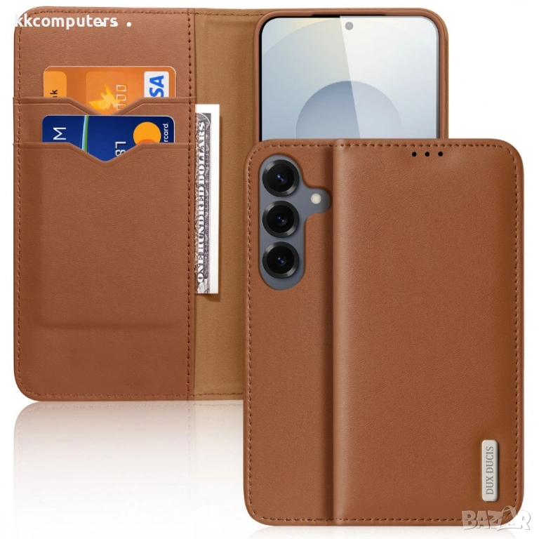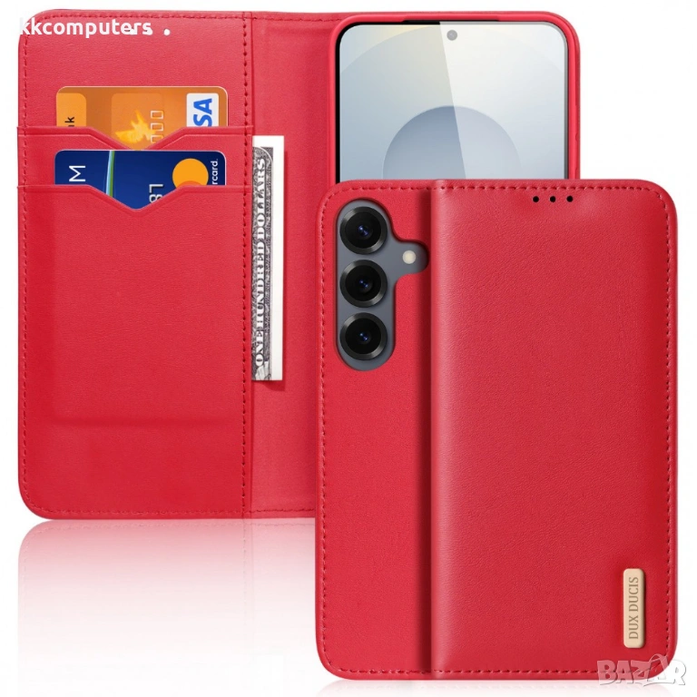 Изберете DUX DUCIS Hivo Series – луксозният кожен калъф с естествена кравешка кожа, RFID защита и пълна портфейл функционалност за вашия Samsung Galaxy S26.