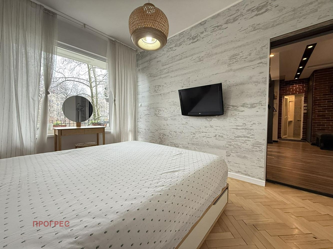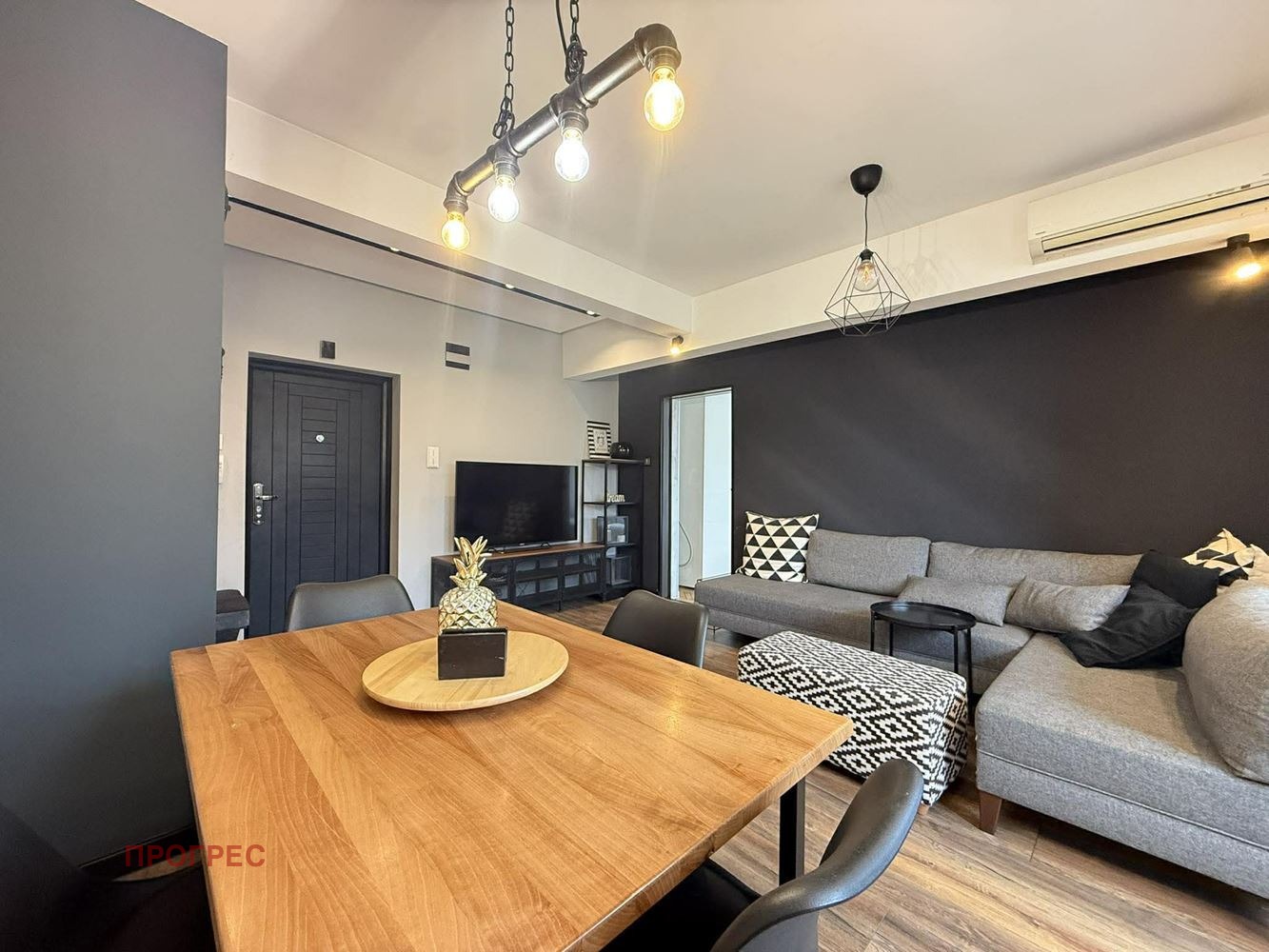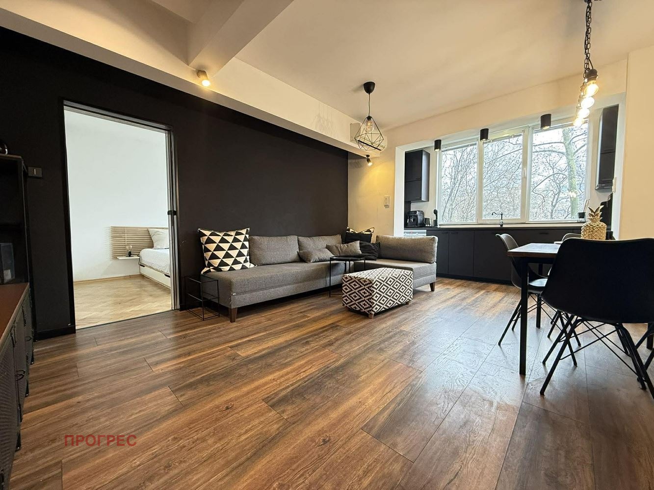 Апартаментът се предлага напълно обзаведен и оборудван с всички необходими мебели и електроуреди, което го прави готов за нанасяне или отдаване под наем. Изложението е западно, с приятна гледка към парка, осигуряваща светлина и комфорт. В района има свободно и безпроблемно паркиране.