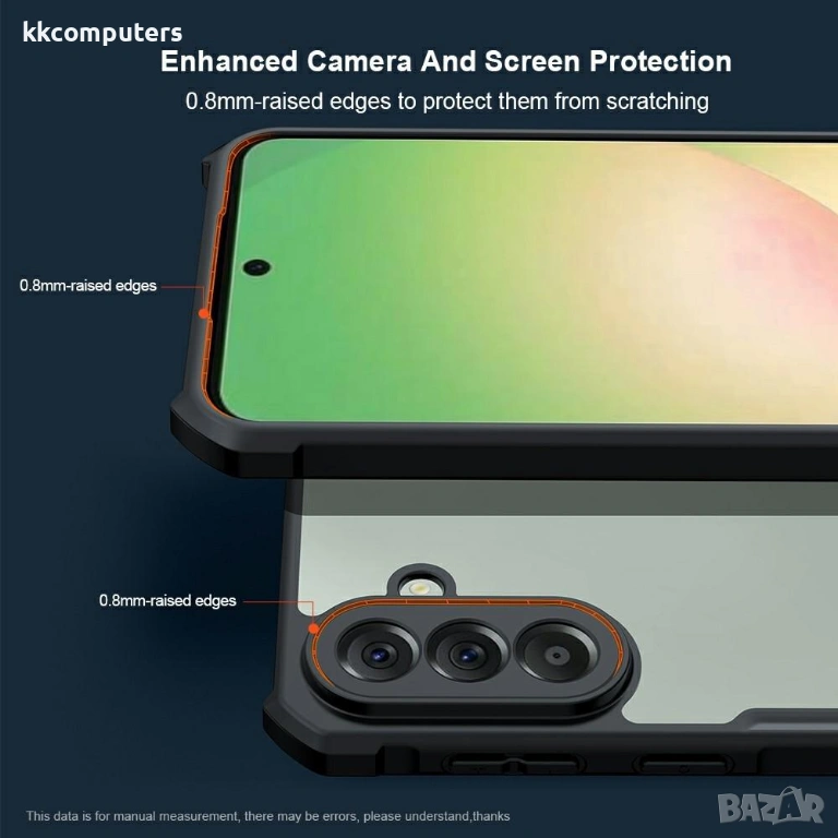 Хибридна конструкция – твърд акрил + мека TPU рамка: Комбинацията от твърд прозрачен акрилен гръб и гъвкава TPU рамка осигурява отлична устойчивост на удари, като същевременно позволява лесно поставяне и сваляне.