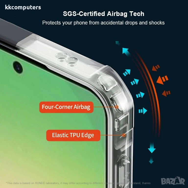 Airbag технология за защита при падане: Специалните въздушни възглавнички в четирите ъгъла действат като амортисьори, които разсейват енергията при удар и значително намаляват риска от повреда при изпускане.
