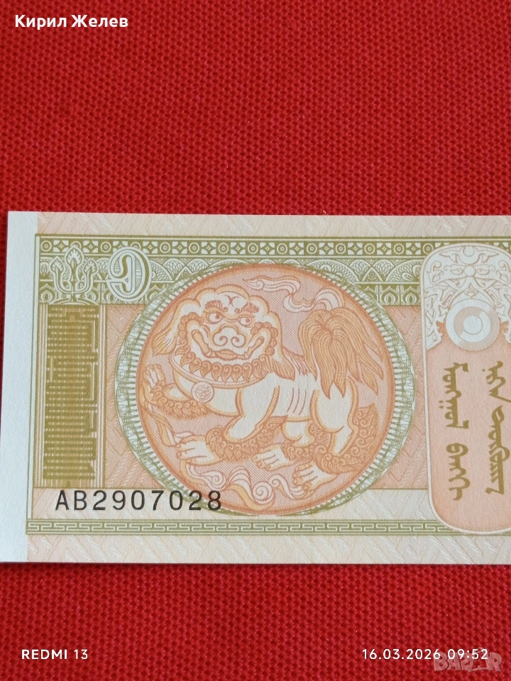 Банкнота МОНГОЛИЯ много красива перфектно състояние непрегъвана за КОЛЕКЦИЯ ДЕКОРАЦИЯ 54122 → Обява 53854779