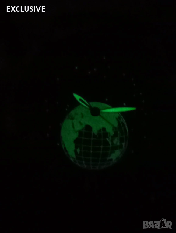 Глобален/лунен циферблат със светещи детайли.