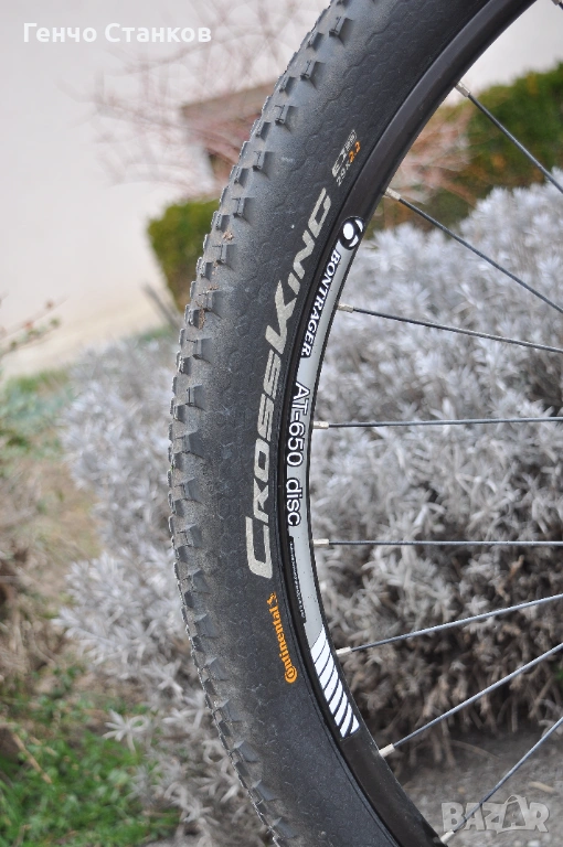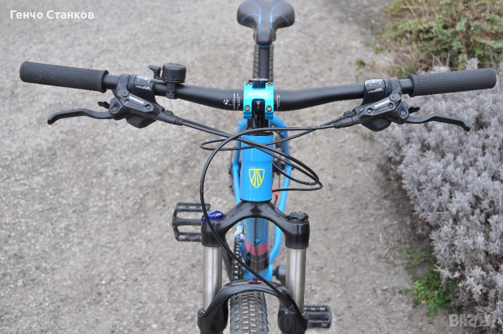 ход от 100 мм. и заключване. Каплите са също класни- Bontrager. Рамката е изработена от Alpha gold алуминий. Байкът има невероятно лек и