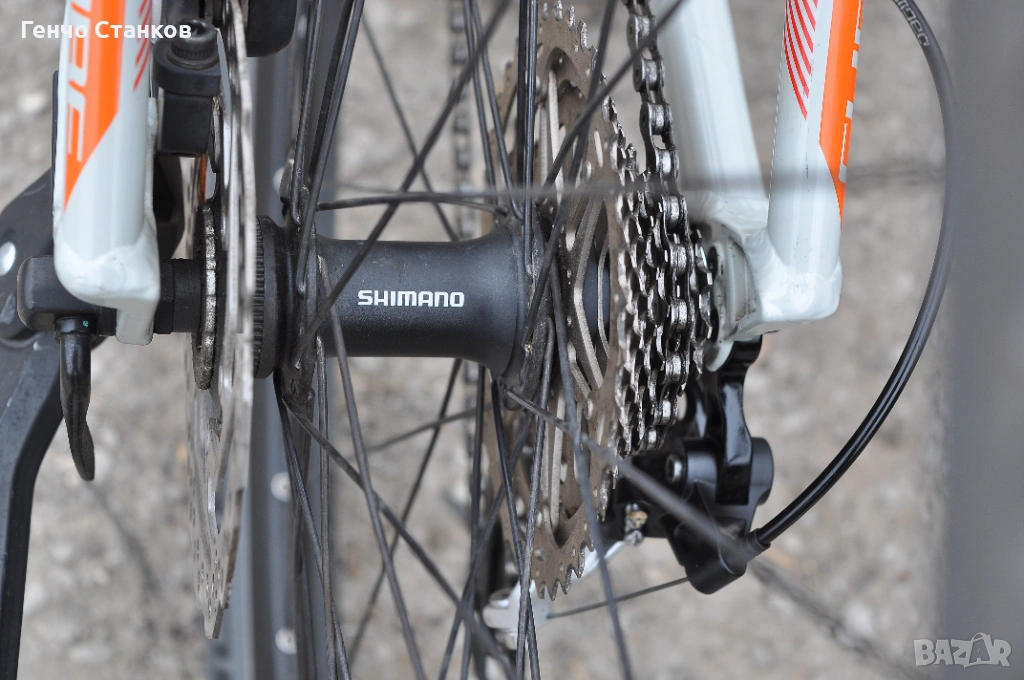 система, дисковите хидравлични спирачки са също Shimano и са много добри, вилката е със заключване
