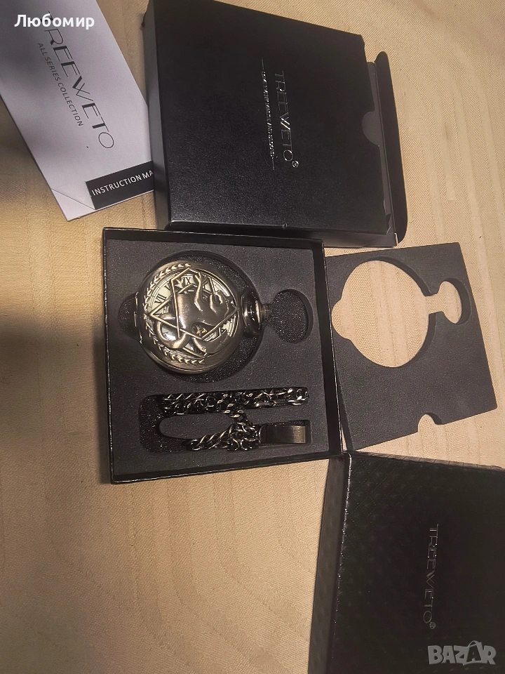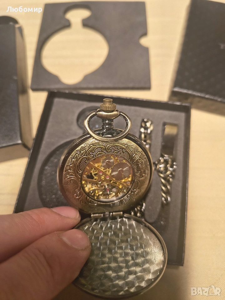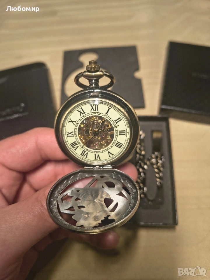 Джобен часовник TREEWETO, мъжки, механичен, с двоен капак, изцяло метален, алхимик, скелет