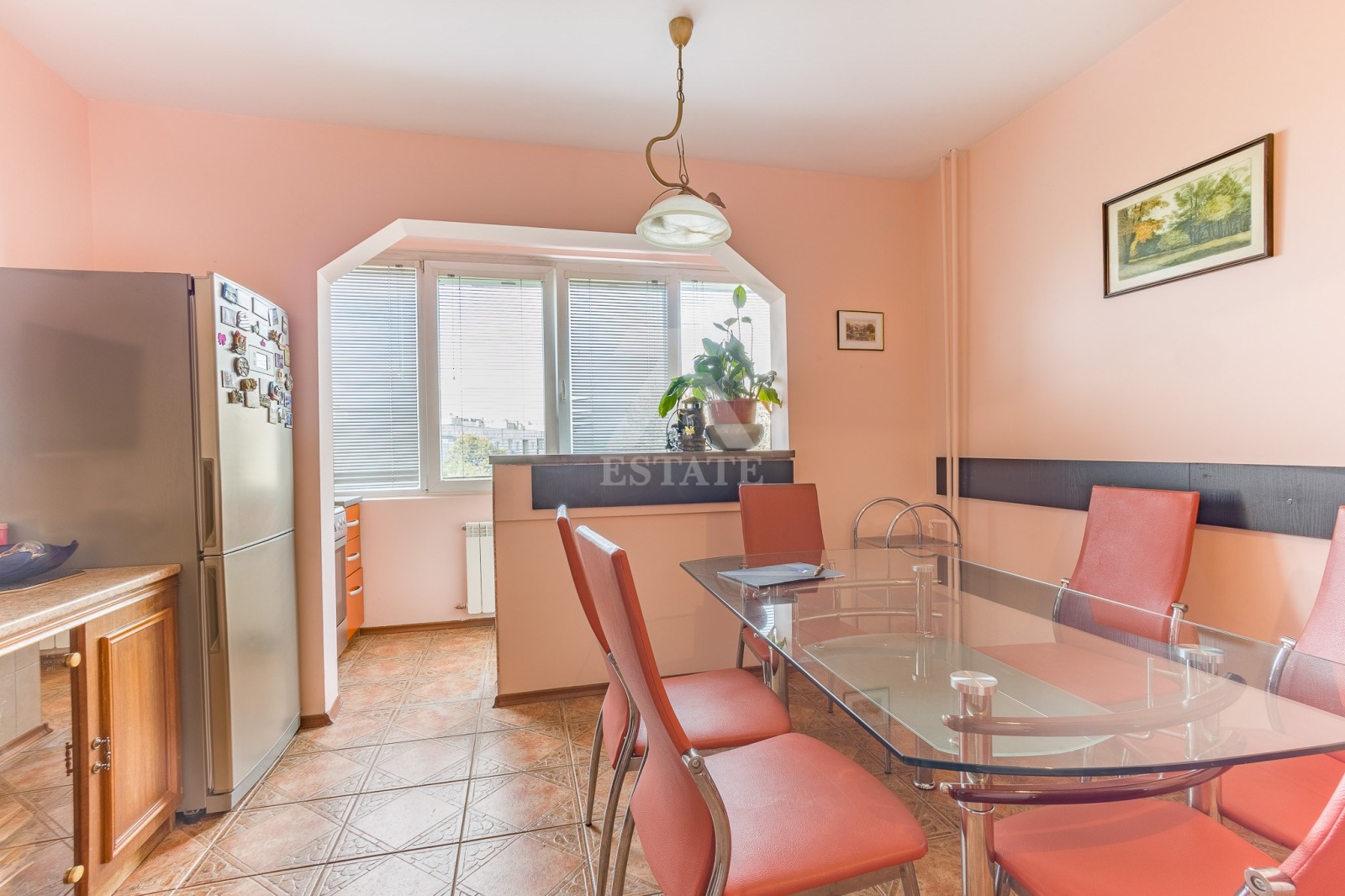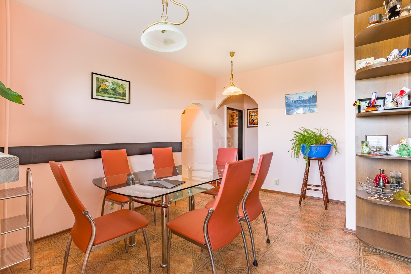 🔑 Апартаментът е разположен на 7 жилищен етаж от 8 и има следното разпределение: входно антре, две просторни спални, дневна, трапезария с обособена кухненска част, мокро помещение, баня с тоалетна и остъклен балкон. Жилището е след освежителен ремонт и е изцяло оборудвано и обзаведено. Светъл и топъл заради високия етаж, външната изолация и новите дограми. Отоплението е посредством ТЕЦ, а топлата вода е на бойлер. Отличава се с функционалното си разпределение, големите пространства и комуникативната локация.