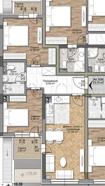 Апартаментът се отличава с функционално разпределение, светли помещения и комфортна жилищна среда.