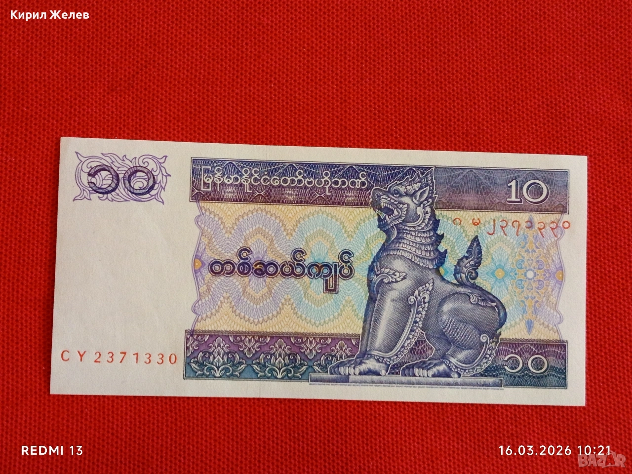 Банкнота МИАНМАР много красива перфектно състояние непрегъвана за КОЛЕКЦИЯ ДЕКОРАЦИЯ 54124 → Обява 53855162