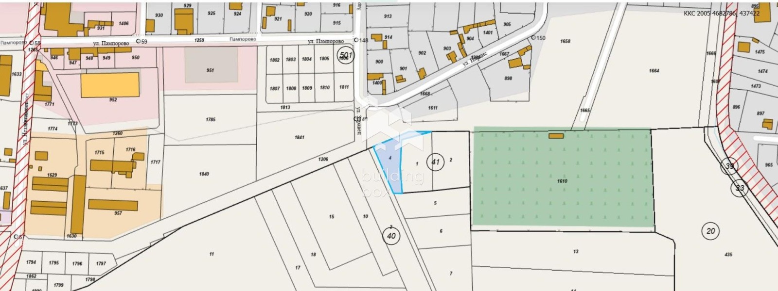 ПЛОЩ: 1184 кв. м, с лице 50 м. Подходящ за построяване на две къщи.