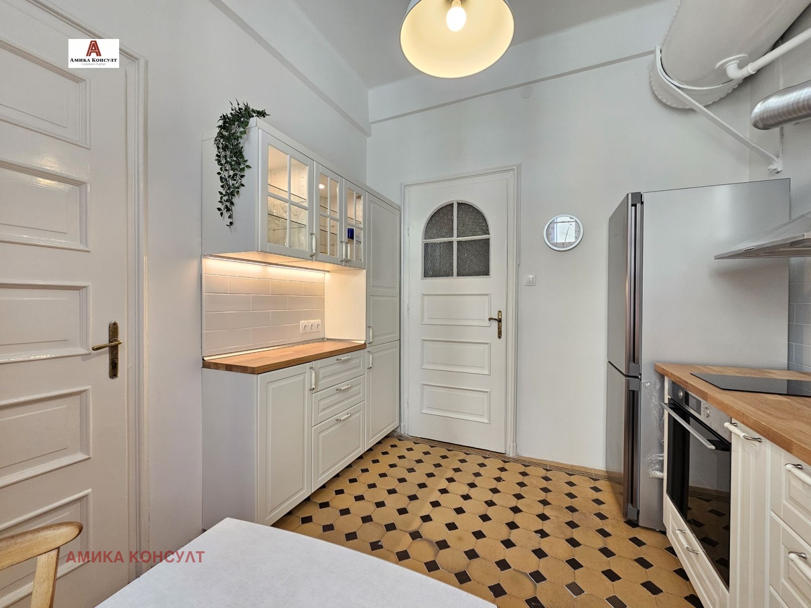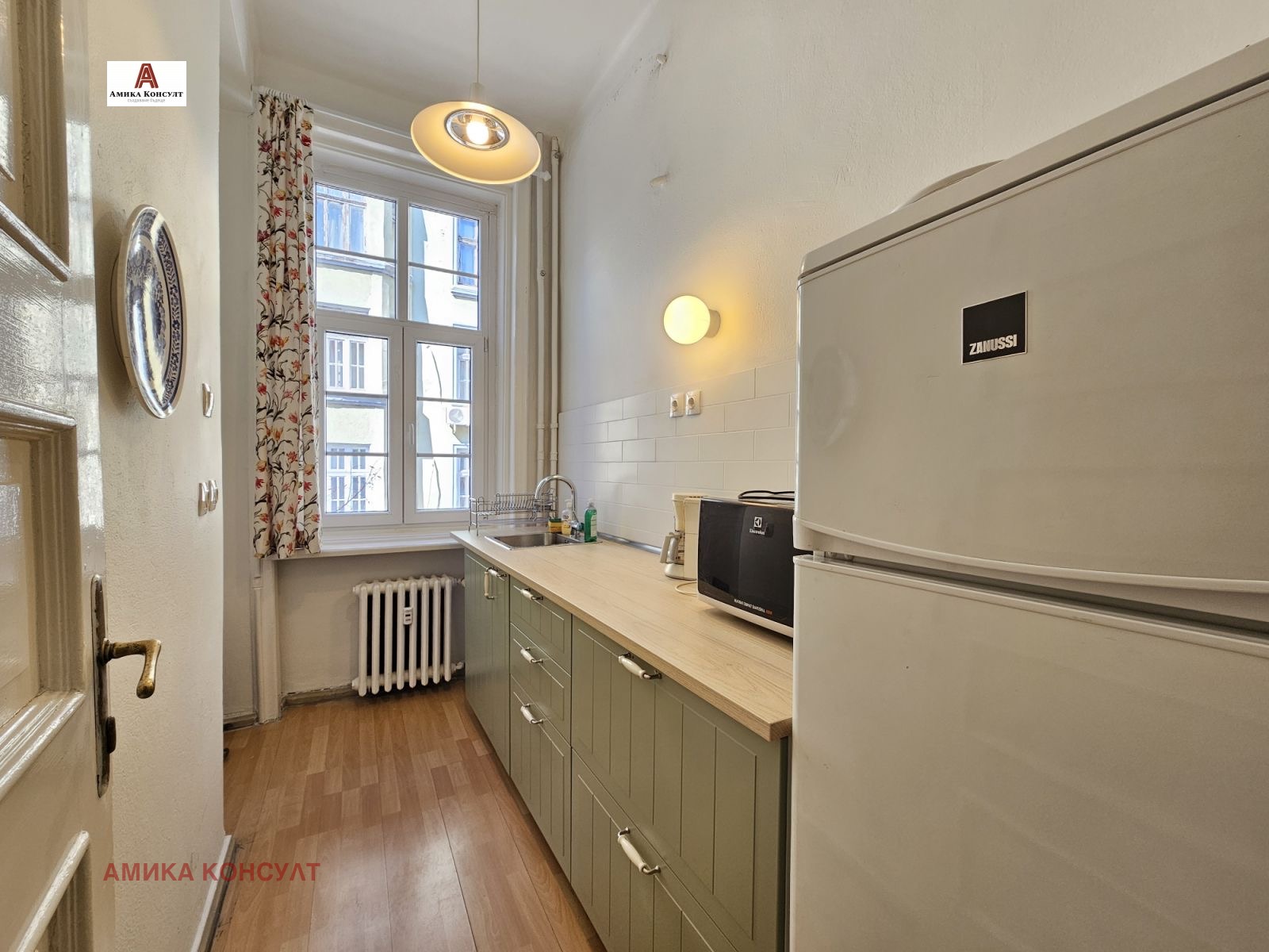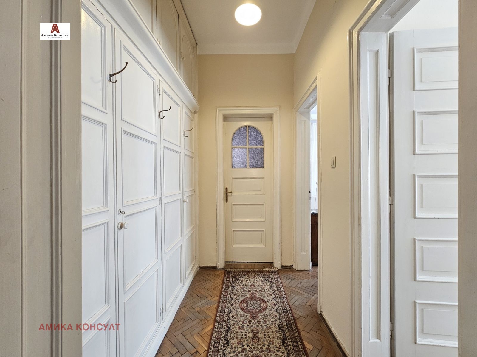Амика Консулт представя просторен многостаен етаж от къща в сграда паметник на културата, след внимателен ремонт със запазена автентична архитектура и атмосфера. Проектирана е от известните архитекти Иван Васильов и Димитър Цолов, чиито големи творби са сградата на Българска Народна Банка, проектът за възстановяване на църква Св. Неделя , Националната библиотека и други.