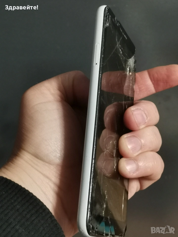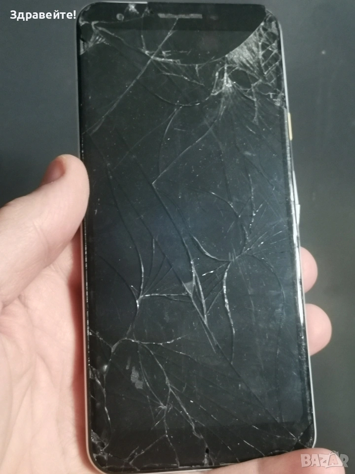 Телефон Google Pixel 3a, счупен дисплей, на зарядно влиза ток, но не се включва.