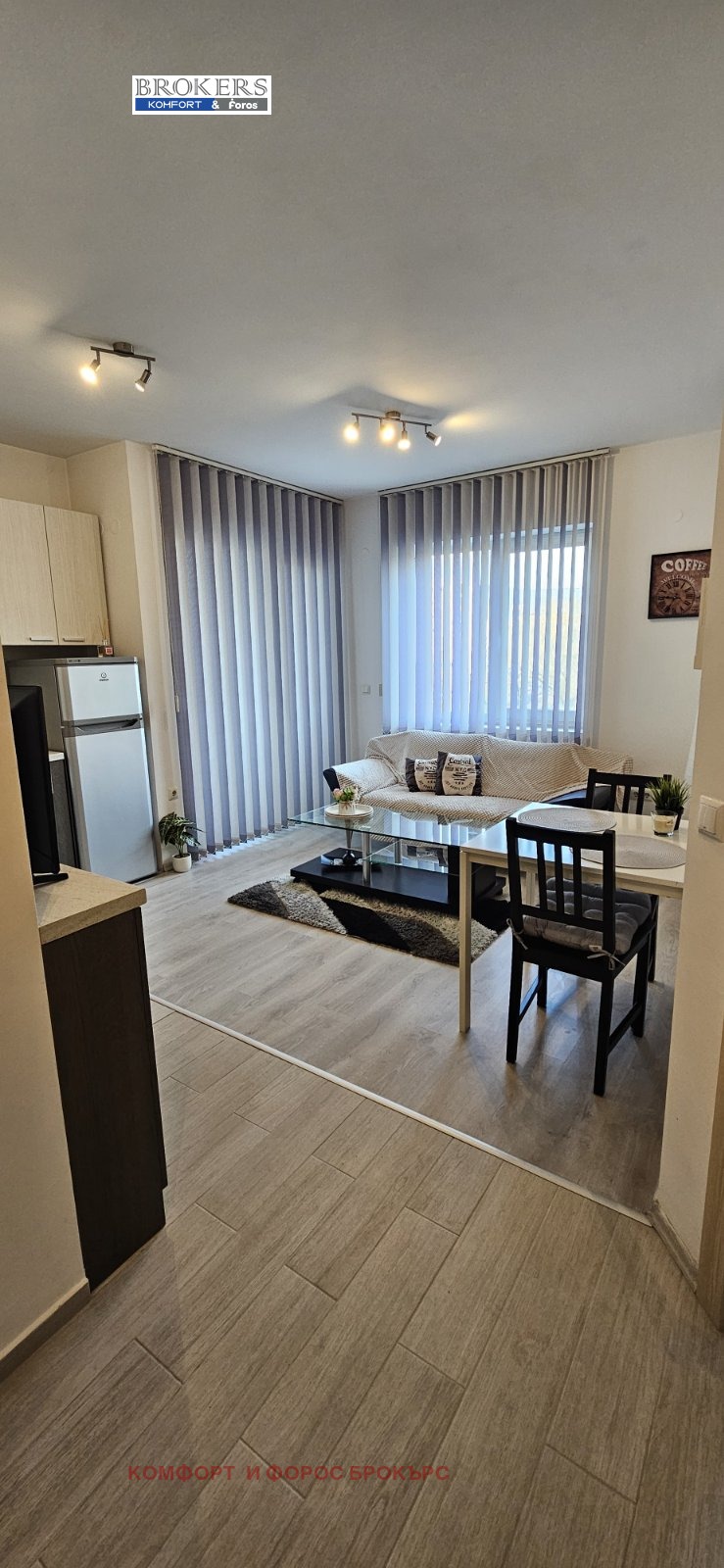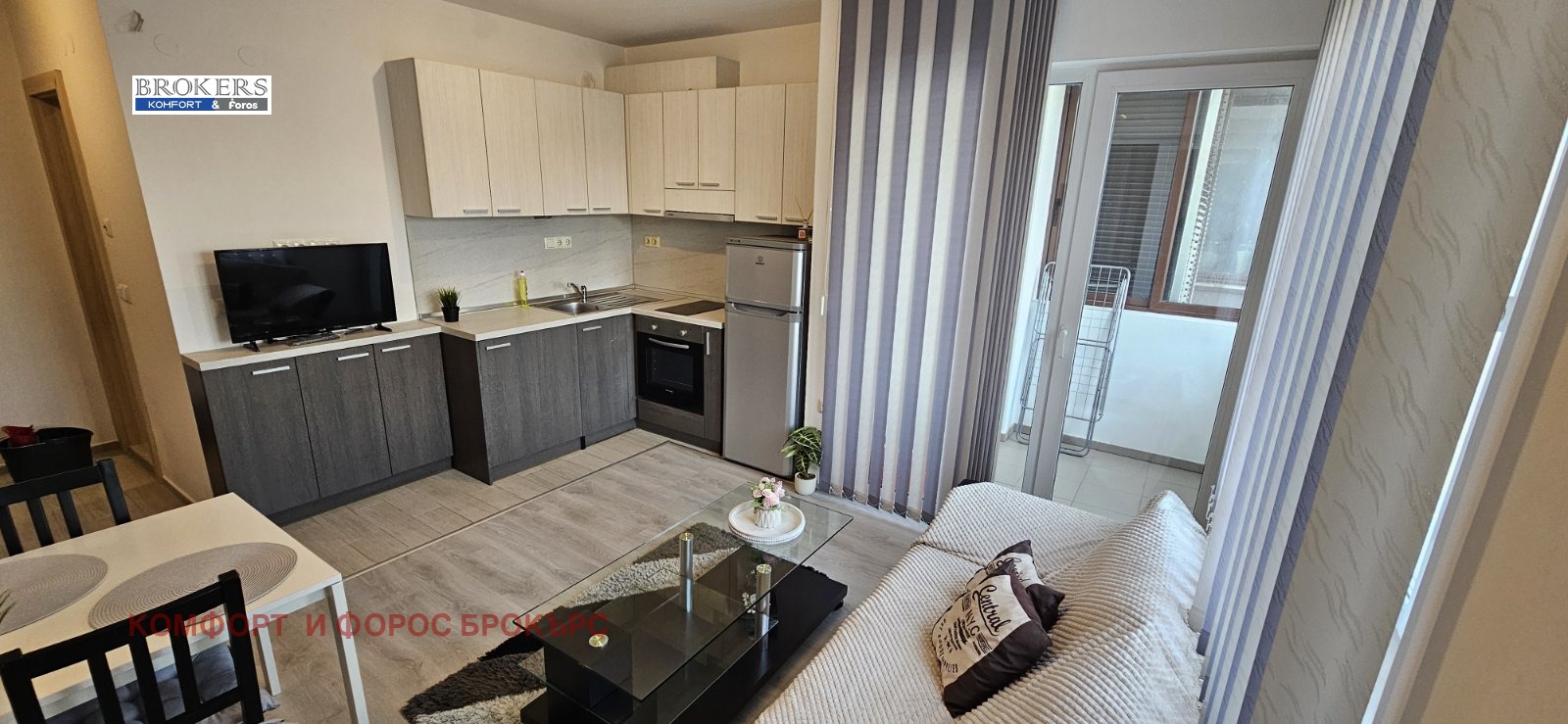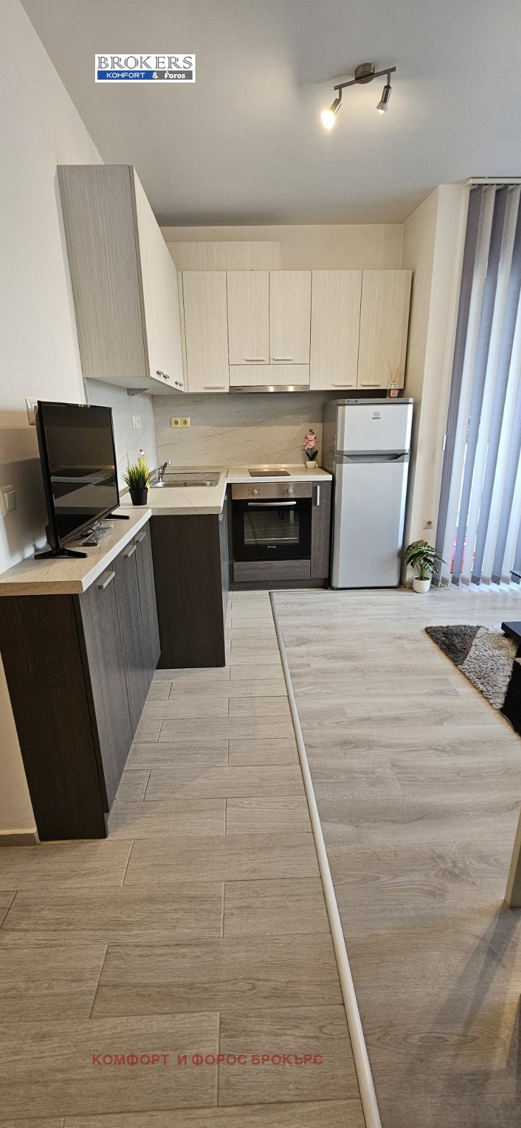 'Комфорт-Брокърс' отдава под наем жилище намиращо се в нова сграда на ул. Подвис. Апартамента е обзаведен и оборудван и се състои от - антре, дневна с кухня и тераса, спалня.