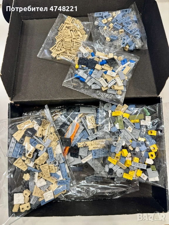 Комплектът не е сглобяван. Пакетите с елементите са вътре и не са отваряни. Налични са книжката с инструкции и оригиналният флаер.