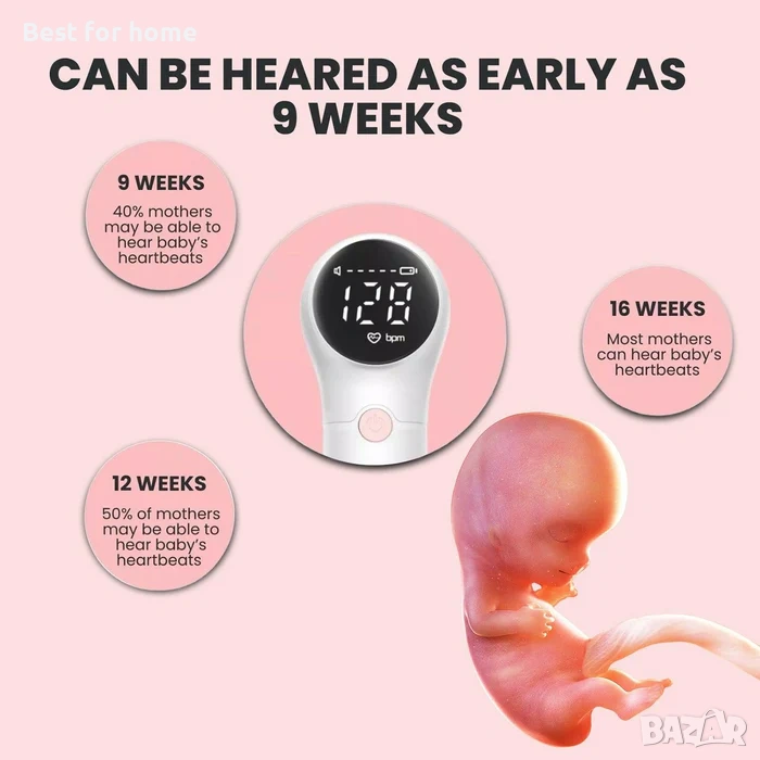 Проектиран да открива и показва сърдечния ритъм на вашето бебе ясно и точно, помагайки ви да наблюдавате благосъстоянието му през цялата бременност.