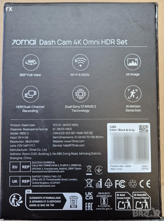 Комплект от 2 автомобилни камери 70mai Omni X800 Dash Cam - Sony STARVIS 2 Dual Technology