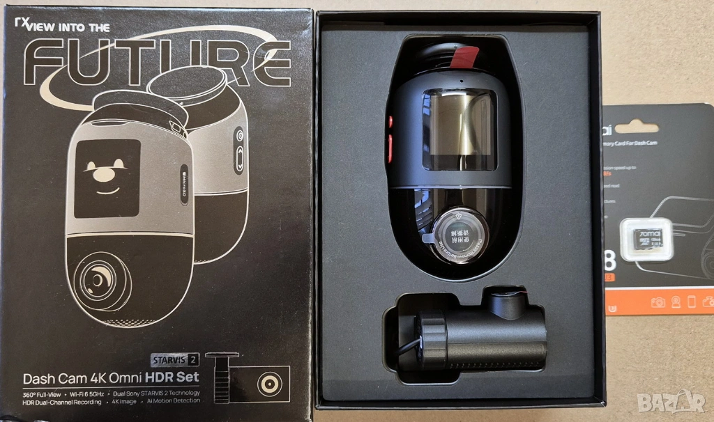 Нов комплект видеорегистратор Xiaomi 70mai 4K Omni X800 + задна камера RC14 + 128гб карта памет