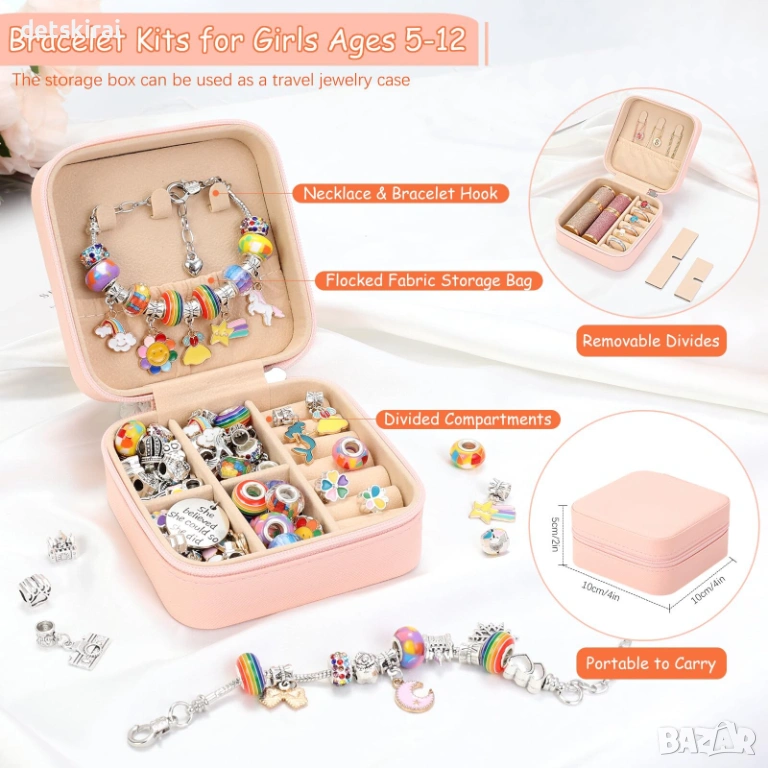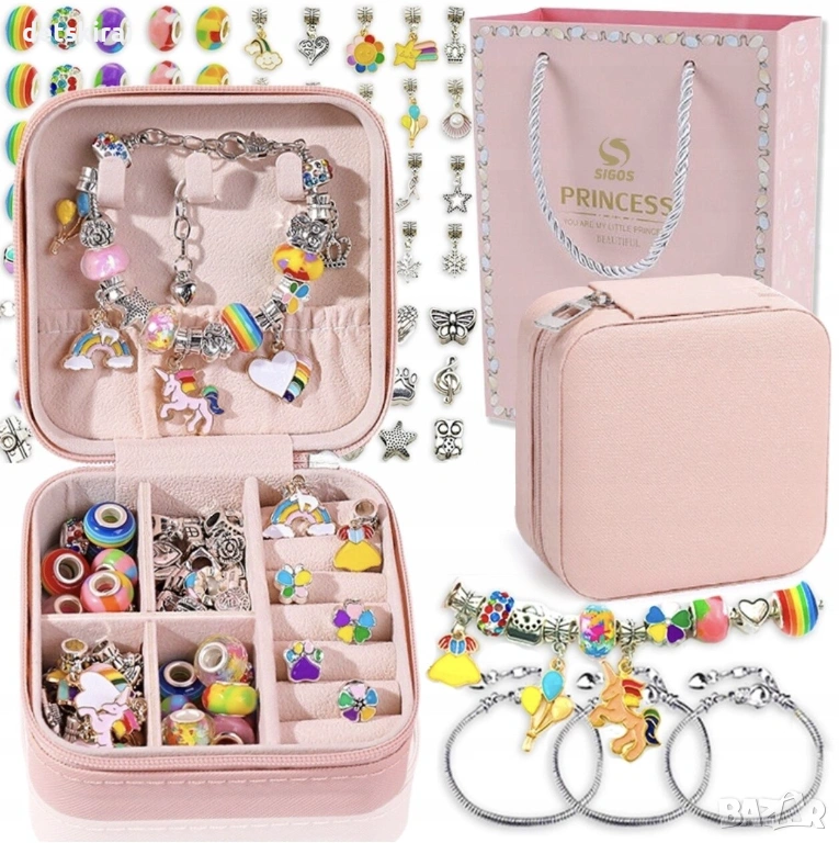 Този очарователен детски комплект за бижута е създаден, за да вдъхнови всяко малко момиче да бъде дизайнер. Ако търсите незабравим подарък за момиче, това е перфектният избор. Той превръща правенето на направи си сам гривни в лесно и вълнуващо занимание.