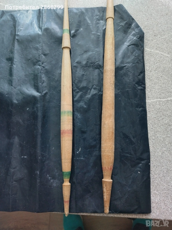 два броя дървени дълги вретена