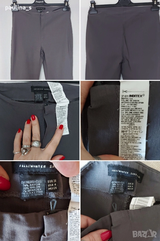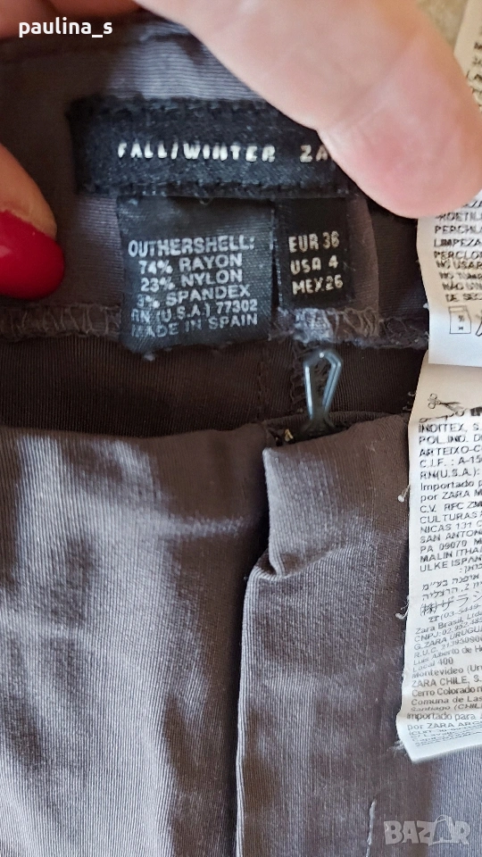 3️⃣. XS / S / Fall / Winter - "Zara" basic. Цената е крайна, без пазарлъци 15 евро. 2001г! Сив Винтидж дамски панталон, без колан, с обърната платка и прави крачоли. Има няколко разшити бода на ципа, което се вижда на снимка(съобразена цена), една бройка, става за посочените размери, вижте мерките в обявата, моля.