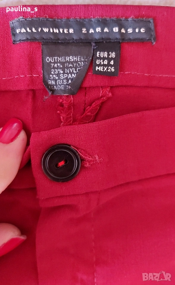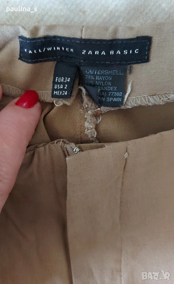 1️⃣. XS / S / Fall / Winter - "Zara" basic. Цената е крайна, без пазарлъци 20 евро. Екрю цвят, моделът е с висока талия, без колан, с обърната платка и прави крачоли, като нов. Цвят Nude, Охра, телесен, екрю.